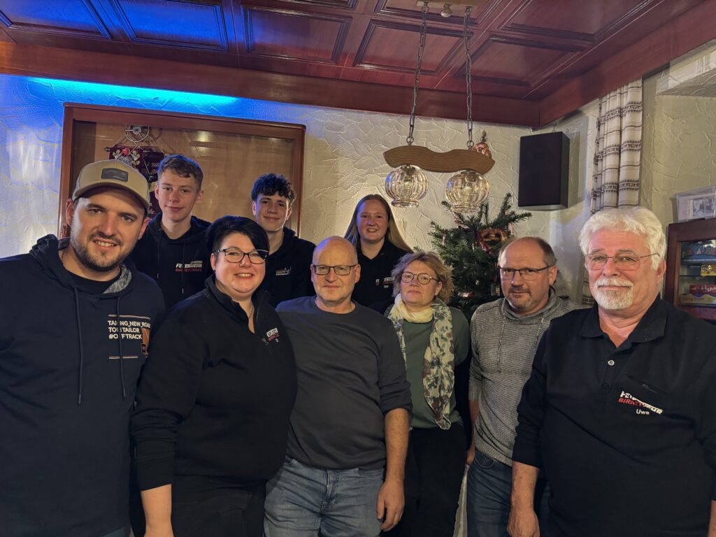 Die diesjährigen Gewinner des Christbaums, dessen Behang (u.a. Brezen und verschiedene Wurst) wieder mit allen Anwesenden geteilt wurde, gemeinsam mit den Gastgebern der FF Birnstengel.